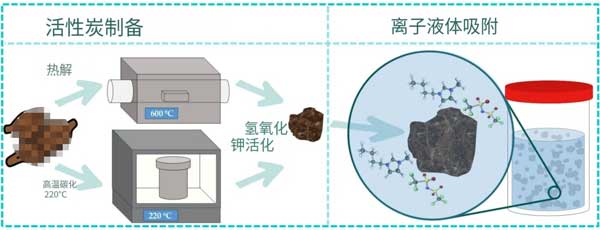 目前,處理含水相中離子液體的方法包括高級氧化法、生物降解法、膜分離法和吸附法等。其中,吸附法因其操作簡便、成本相對較低、設計靈活且通常不產(chǎn)生有害副產(chǎn)物等優(yōu)勢,被認為是最具應用前景的技術路徑之一。吸附法的核心在于吸附劑;钚蕴孔鳛樽顐鹘y(tǒng)且應用最廣泛的吸附劑,具有發(fā)達的孔隙結構、巨大的比表面積和豐富的表面化學官能團,對多種有機污染物展現(xiàn)出卓越的吸附能力。然而,商業(yè)活性炭生產(chǎn)成本較高,且對特定污染物(如離子液體)的吸附選擇性和容量仍有優(yōu)化空間。